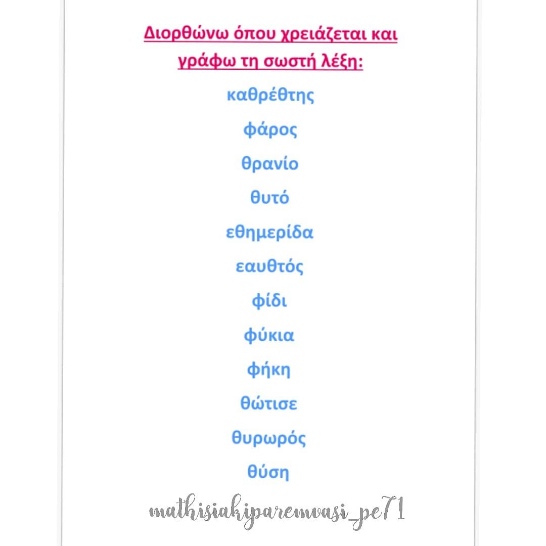 Αυτές τις μέρες δουλέψαμε τη διάκριση φ-θ , τόσο γραπτά όσο και προφορικά.