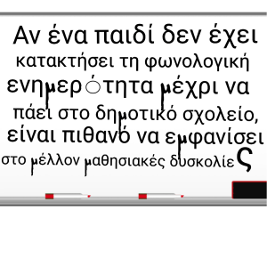 Η Φωνολογική επίγνωση ιδανικά , πρέπει να έχει κατακτηθεί από ένα παιδί πριν να ξεκινήσει να φοιτά στο δημοτικό σχολείο.