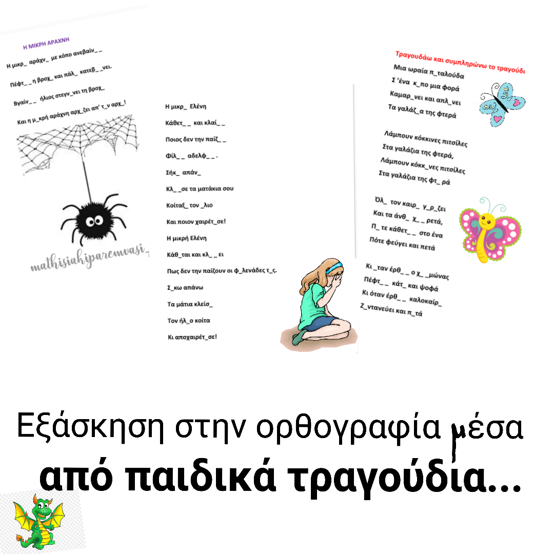 Χρησιμοποίησα του στίχους πολύ γνωστών παιδικών τραγουδιών για να κάνουμε εξάσκηση στους κανόνες ορθογραφίας.