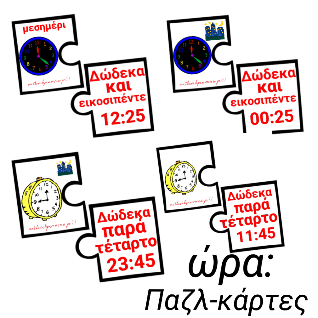Εκτυπώσιμο παιχνίδι – παζλ με καρτέλες για την εκμάθηση – εξάσκηση της ώρας.