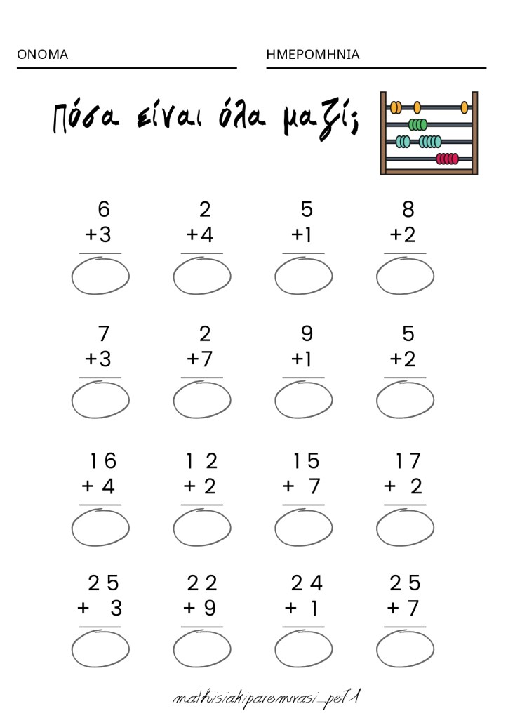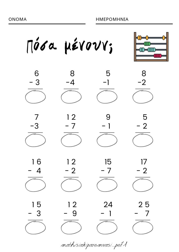 Τα σημερινά φύλλα εργασίας στο Τμήμα Ένταξης, με τους μικρούς μαθητές αφορούσαν πρόσθεση και αφαίρεση με μικρούς αριθμούς.