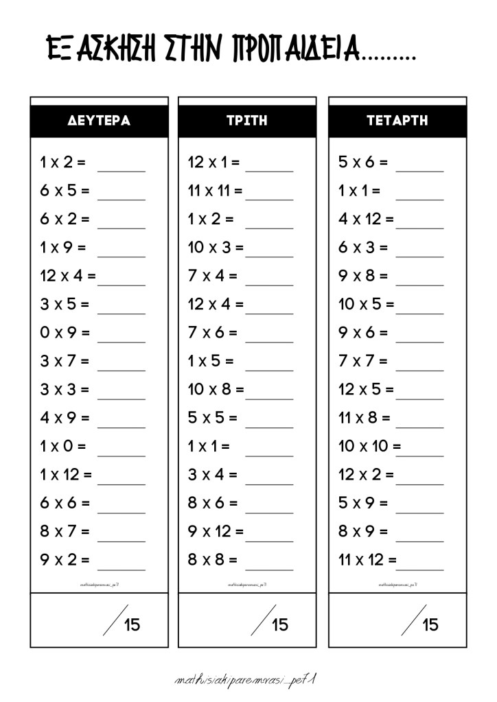 ✍️📝Μία κάρτα με πράξεις για κάθε μέρα της εβδομάδας …