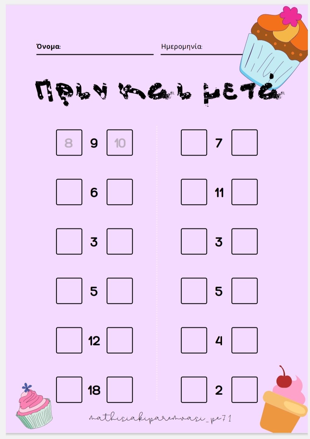 Ετοίμασα αυτό το μικρό βιβλιαράκι για να εξασκηθούμε στην πρόσθεση και την αφαίρεση σε αριθμούς από το 1 έως το 20 , να κατανοήσουμε την αξία τους καθώς και να βρίσκουμε τον προηγούμενο και επόμενο αριθμό.