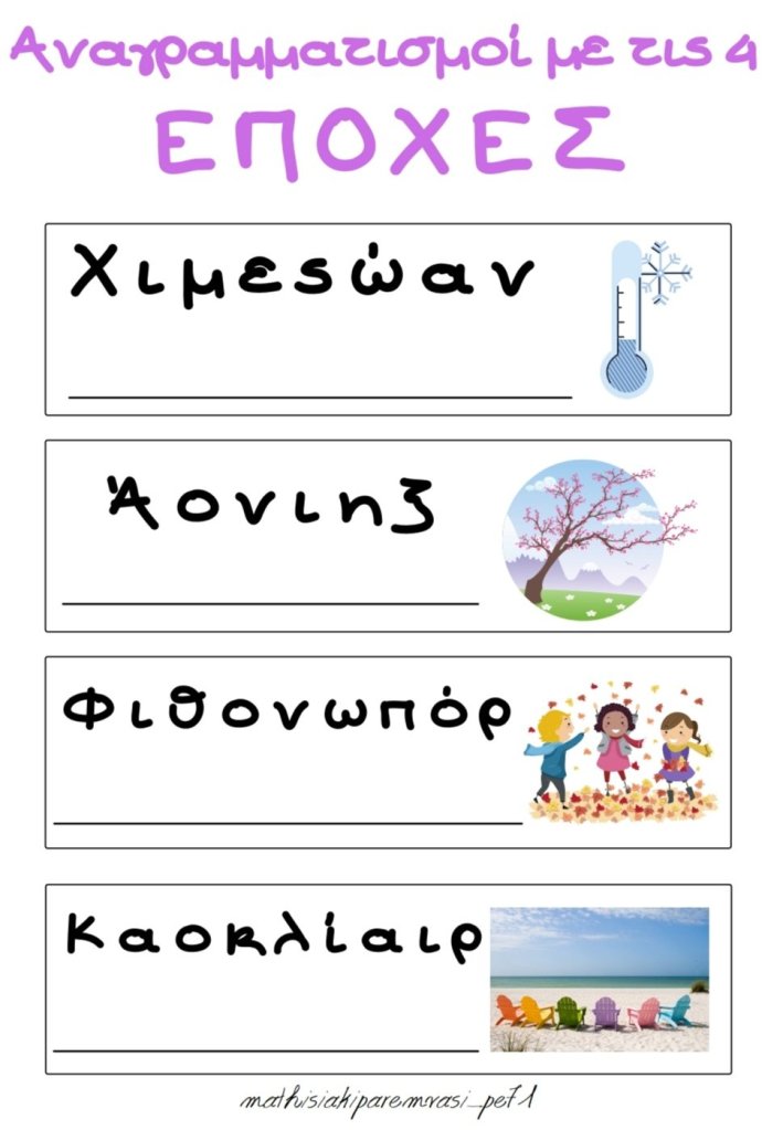 Θέμα φυσικά οι 4 εποχές, τις οποίες δε χάνουμε ευκαιρία στην τάξη να τις αναφέρουμε και να ανακαλούμε στη μνήμη μας ό,τι πληροφορίες έχουμε μάθει γι αυτές.