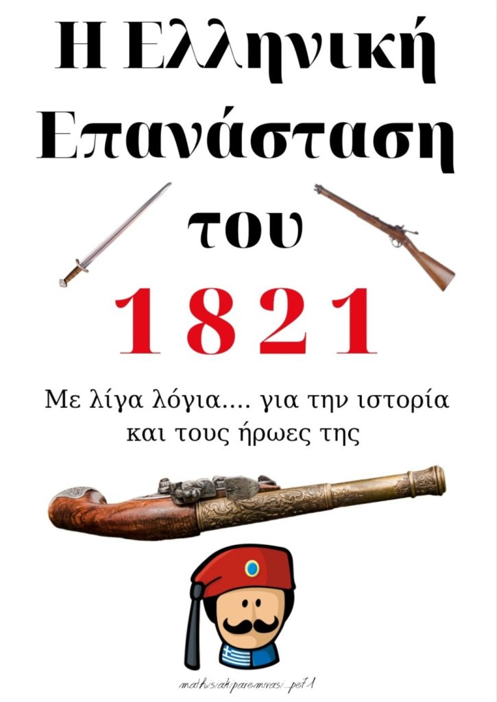 Μοιράζομαι μαζί σας το υλικό -18 σελίδων- που ετοίμασα για να πω λίγα λόγια και κατανοητά στους μαθητές μου, σχετικά με την ελληνική επανάσταση του 1821.