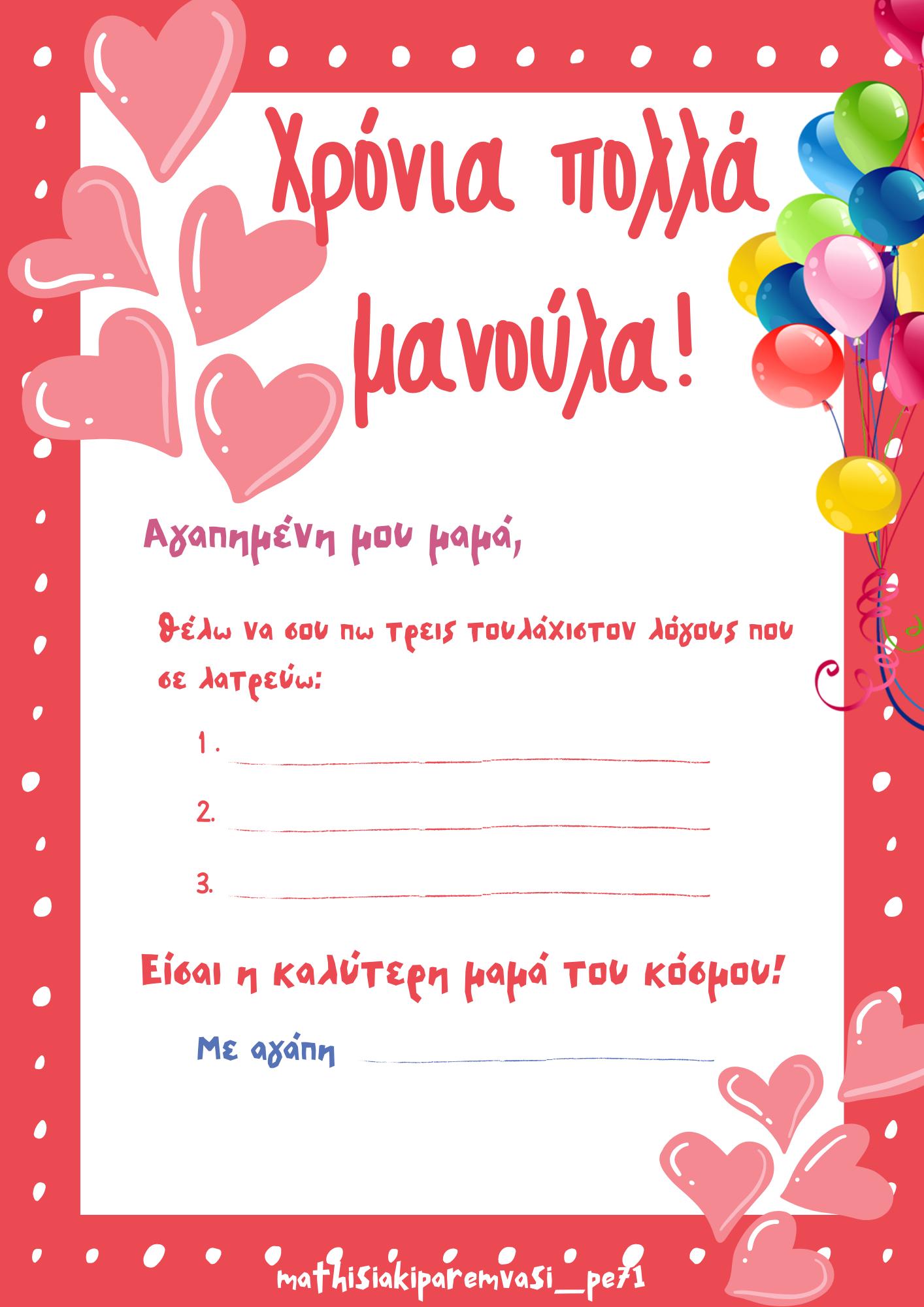 Το φετινό υλικό , κάρτες / ευχές για τη γιορτή της μητέρας