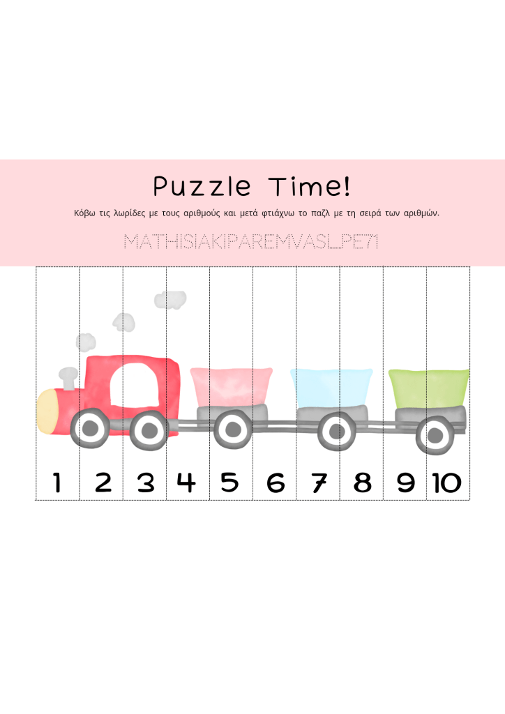 🔴Παζλ με εικόνα τρενάκι με βαγόνια με κομμάτια 1-10