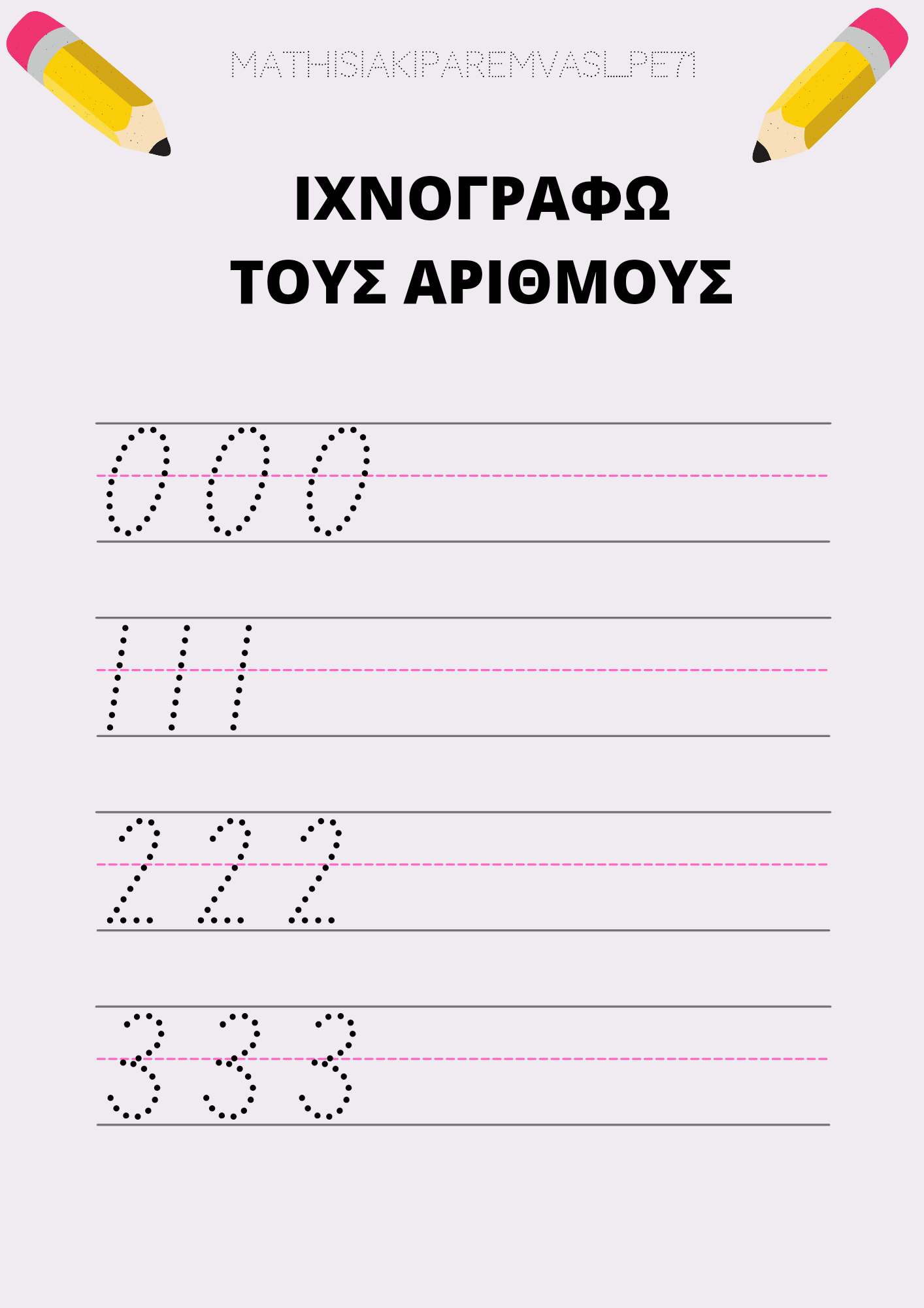 🔴Φύλλα εργασίας με ιχνογραφία των αριθμών