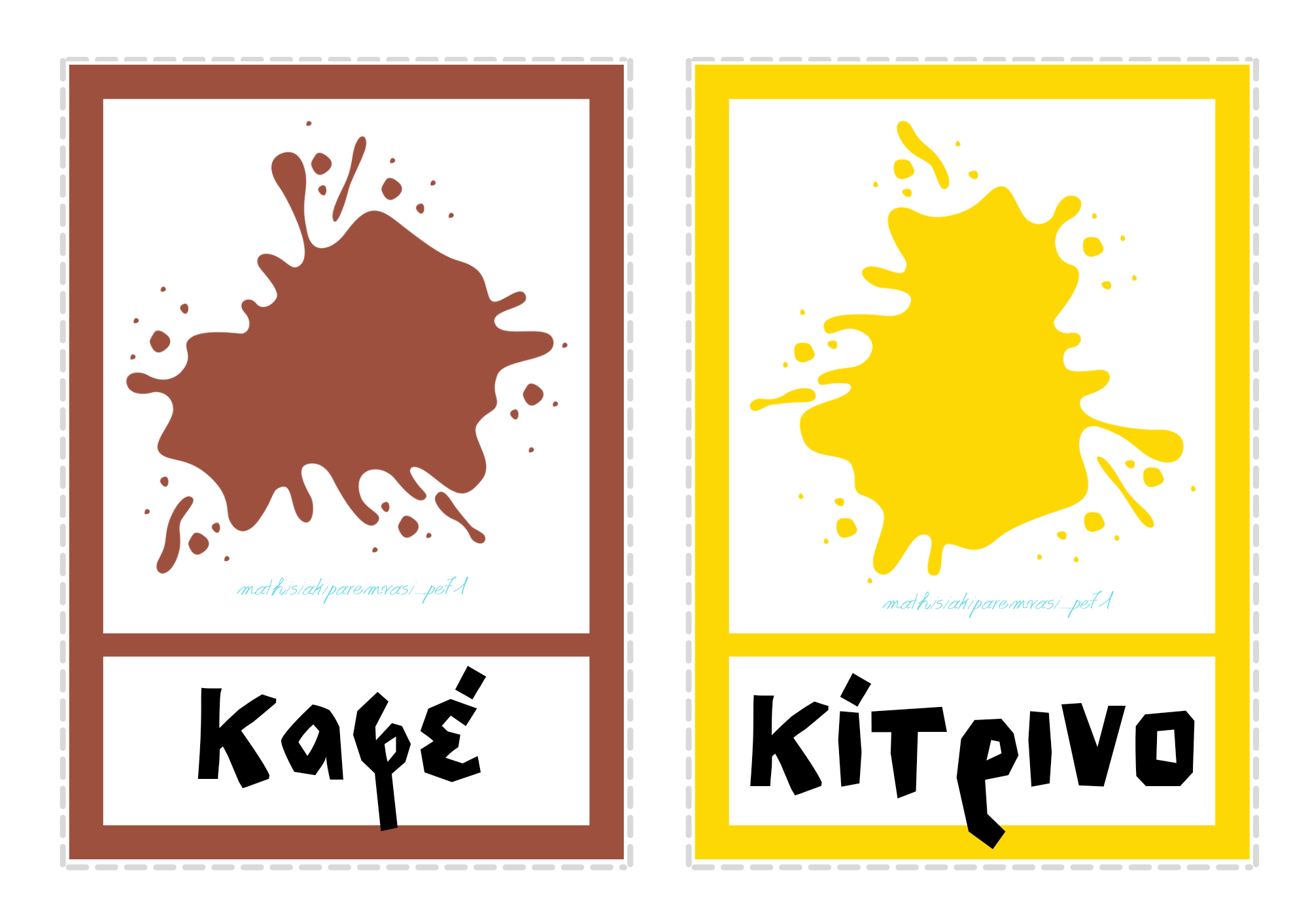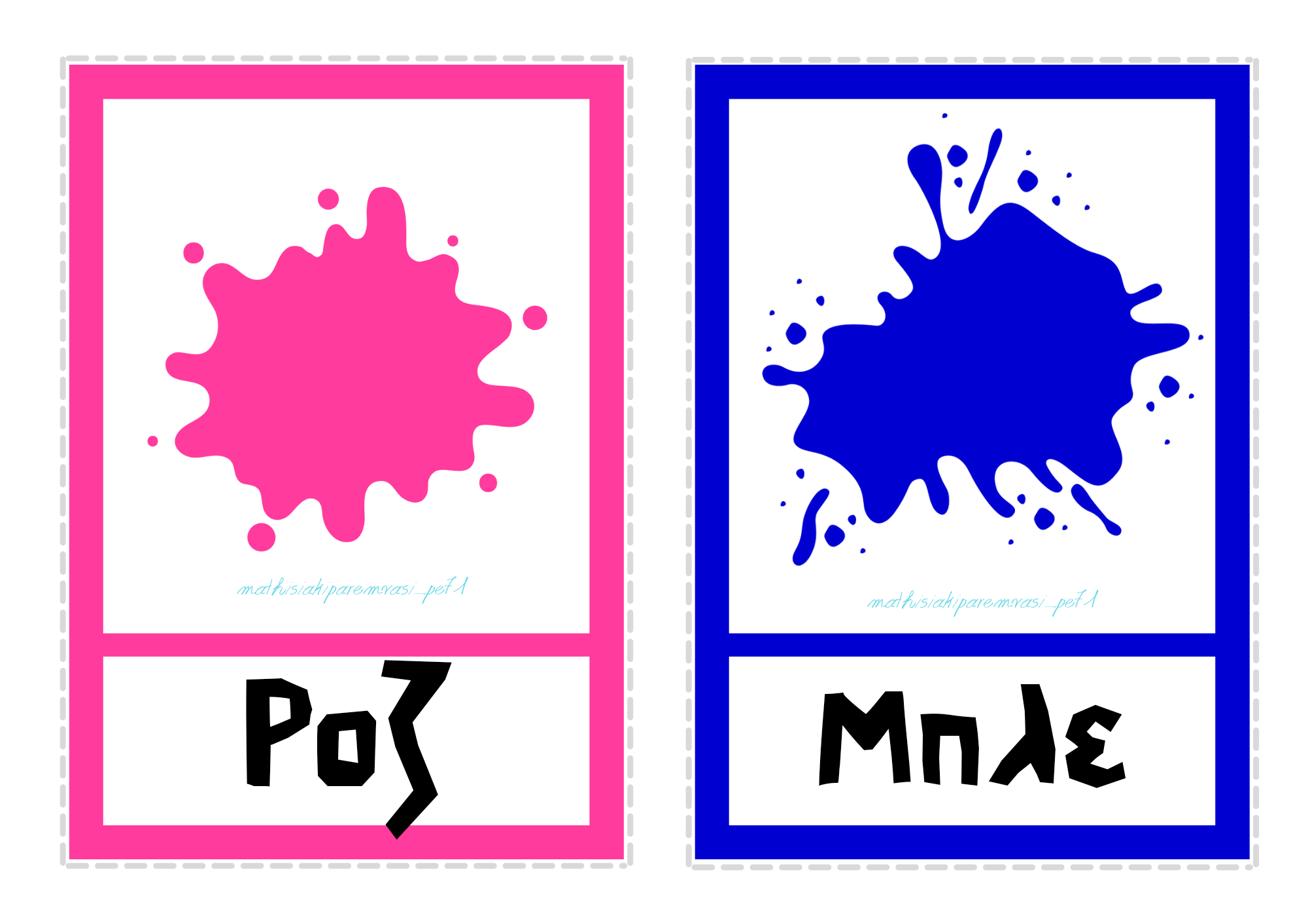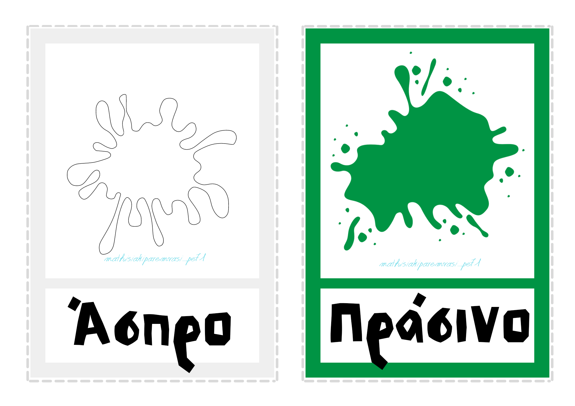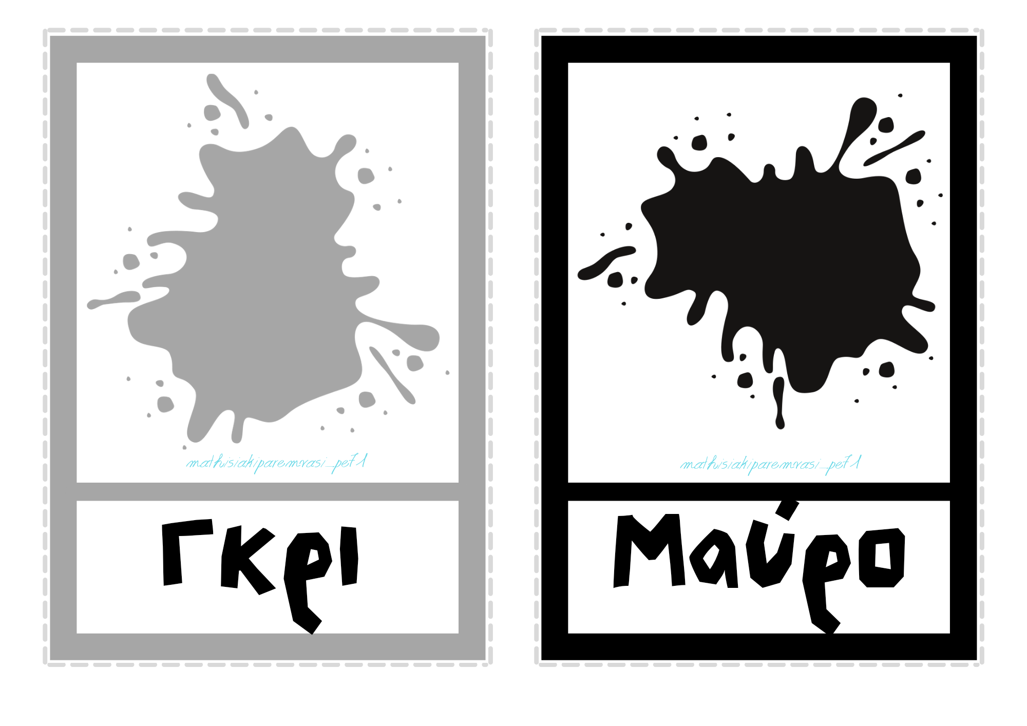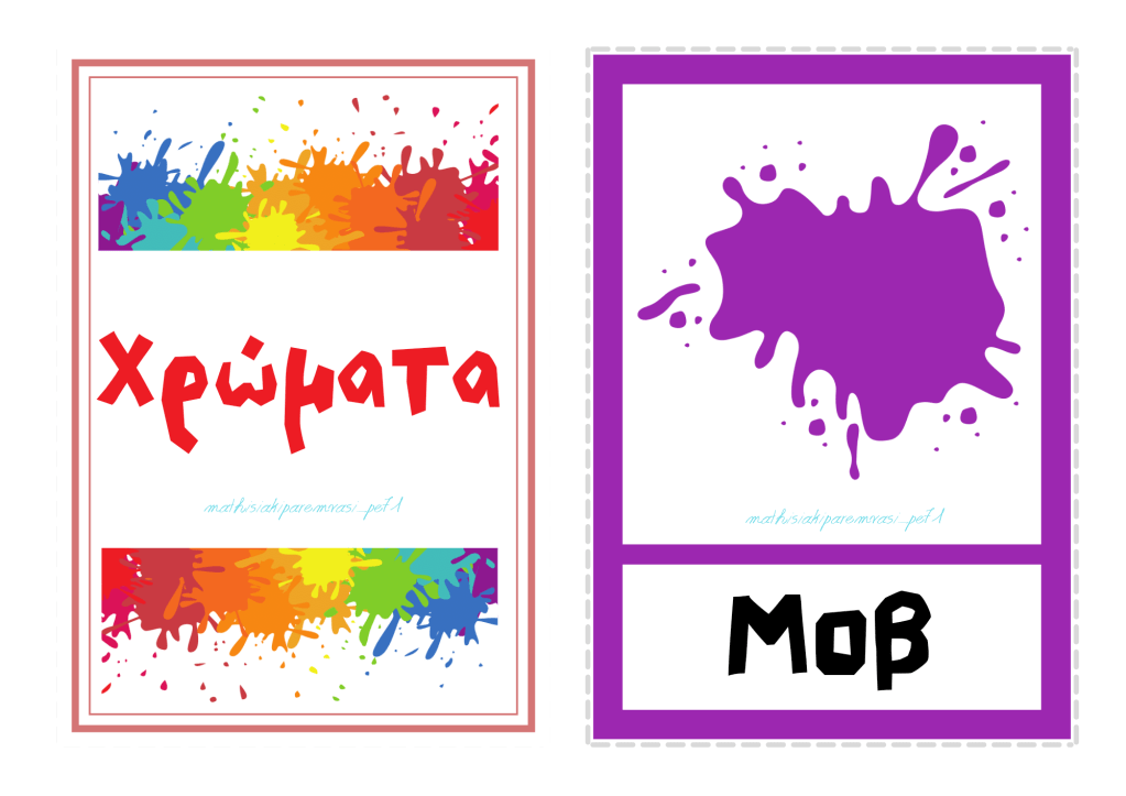Εκτός από αυτά, το αρχείο παρακάτω περιέχει και κάρτες χωρίς την ονομασία του κάθε χρώματος αλλά με κενά ώστε να συμπληρώσει τα γράμματα ο μαθητής.