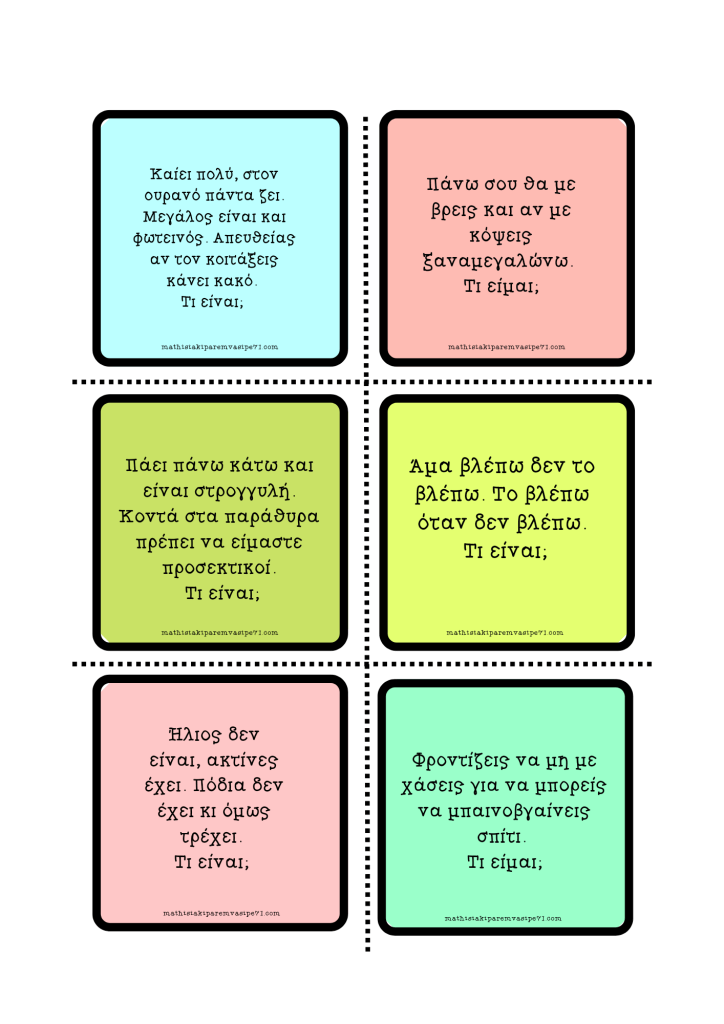 Νέο εκτυπώσιμο παιχνίδι με κάρτες με αινίγματα για όλες τις τάξεις.
