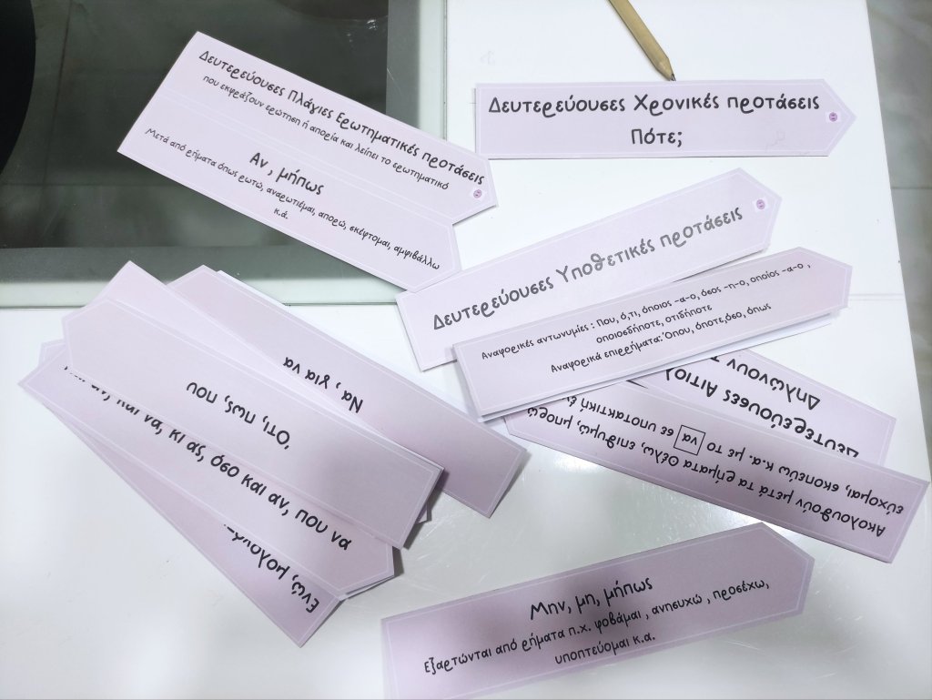 Έφτιαξα αυτές τις καρτέλες που μπορούν να γίνουν μπρελόκ και περιέχουν τα είδη των δευτερευουσών προτάσεων, Επιρρηματικές και Ονοματικές που συναντάμε στην Ε και ΣΤ τάξεις.