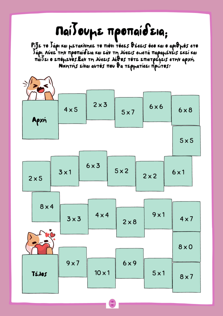 Εκτυπώσιμο επιτραπέζιο παιχνίδι προπαίδειας
