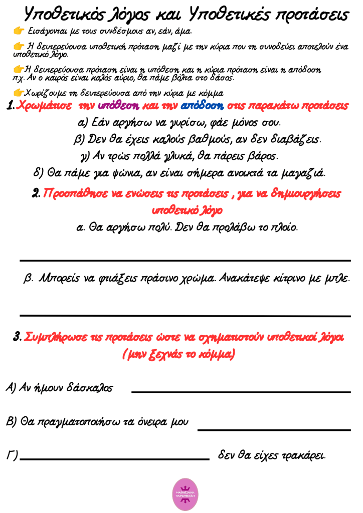 3 Ασκήσεις εξάσκησης στον Υποθετικό λόγο.