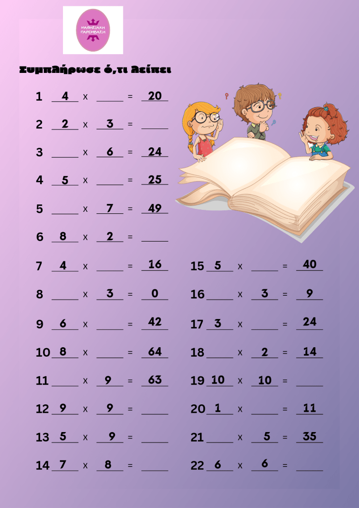 – Προπαίδεια και κάθετες πράξεις πολλασιασμού