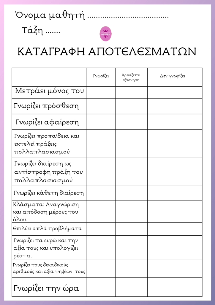 Κάθε χρόνο στα Τμήματα Ένταξης χρειάζεται να αξιολογήσουμε το μαθησιακό επίπεδο των μαθητών μας στη Γλώσσα και τα Μαθηματικά κυρίως αλλά και σε άλλες δεξιότητες.