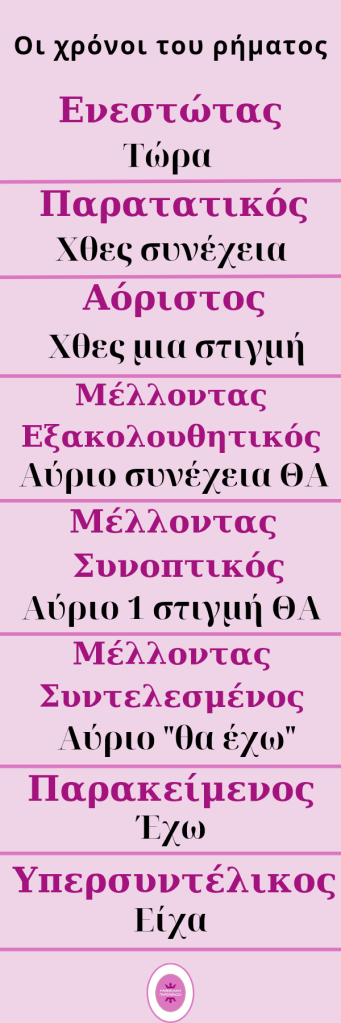 Έφτιαξα ένα σελιδοδείκτη που μπορείτε να κατεβάσετε και να εκτυπώσετε και ιδανικά να το πλαστικοποιήσετε. Είναι ιδανικός οδηγός για χρονική αντικατάσταση, οπτικό βοήθημα και υπενθύμιση των λέξεων κλειδιών για κάθε χρόνο, ώστε το παιδί να κάνει χρονική αντικατάσταση ρήματος και έτσι να μάθει να ξεχωρίζει τον κάθε χρόνο.