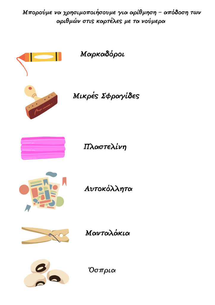 Το παρακάτω υλικό είναι εκτυπώσιμες κάρτες με αριθμούς 1-20 το οποίο μας βοηθάει να μάθουμε μέσω πολλών υλικών, πολυαισθητηριακά τον κάθε αριθμό και την πληθυκοτητά του.