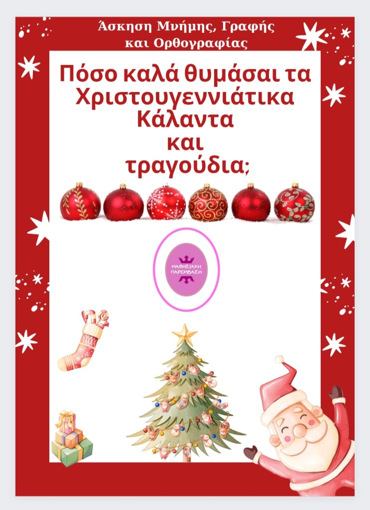 ✨Με αφορμή τα κάλαντα και τα Χριστουγεννιάτικα τραγούδια που ακούμε και μαθαίνουμε δημιούργησα φύλλα εργασίας με αυτά τα οποία μπορούν να χρησιμοποιηθούν για εξάσκηση στη μνήμη, γραφή και Ορθογραφία.