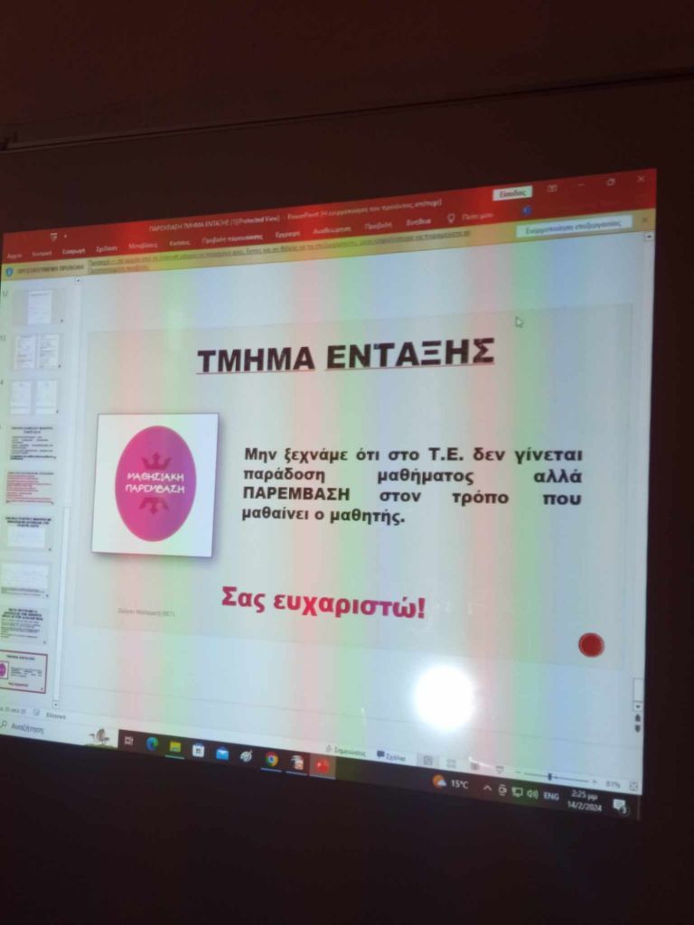 ✨Στις 14 Φεβρουαρίου πραγματοποιήθηκε στο σχολείο μας ενημερωτική συνάντηση του συλλόγου διδασκόντων έπειτα από πρόσκληση που απηύθυνα με την ιδιότητα της ενδοσχολικής συντονίστριας του σχολείου, με θέματα που αφορούν το Τμήμα Ένταξης, τη λειτουργία του και τη συνεργασία όλων των εκπαιδευτικών για την καλύτερη ένταξη των μαθητών μας.