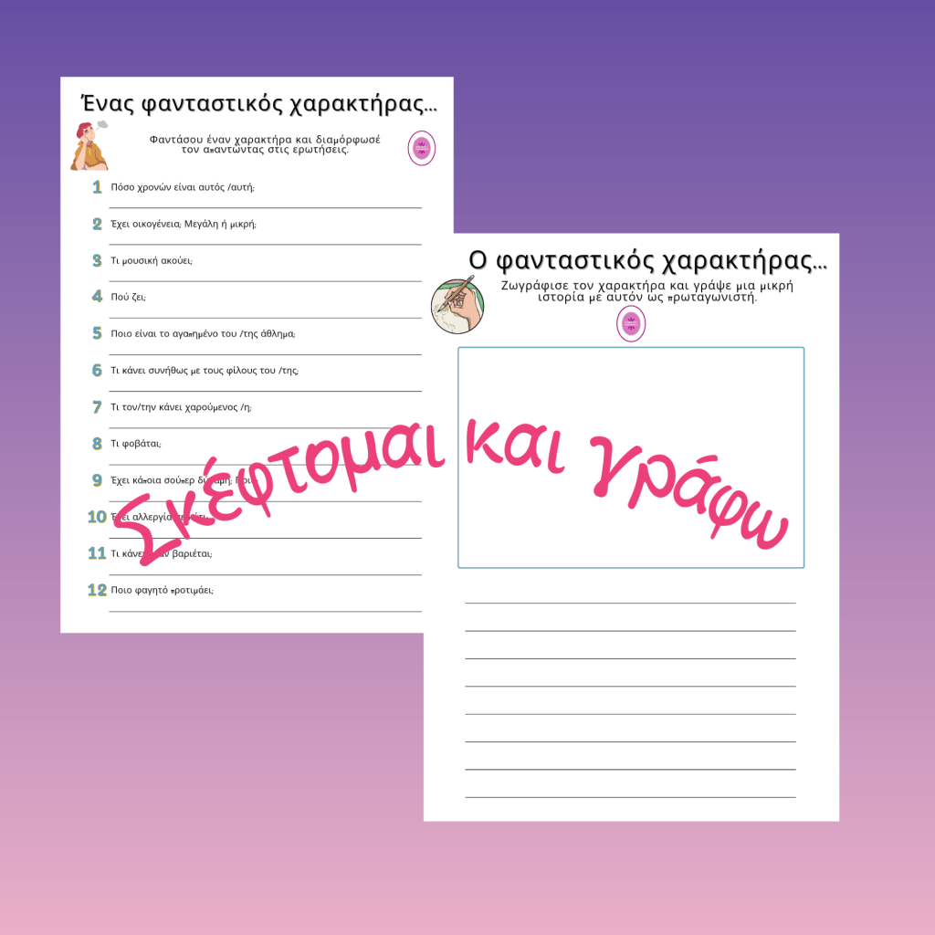 💭Φτιάξε το δικό σου φανταστικό χαρακτήρα απαντώντας στις ερωτήσεις και έπειτα ζωγράφισέ τον.