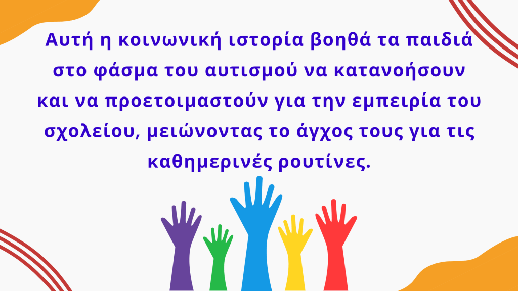 Οι κοινωνικές ιστορίες βοηθούν παιδιά που βρίσκονται στο φάσμα του Αυτισμού και όχι μόνο, τα οποία δυσκολεύονται με τις αλλαγές και κάθε νέο ξεκίνημα όπως είναι η φοίτηση στο σχολείο.